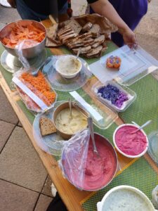 - Un houmous à base de betteraves, de pois chiches et d’olives,