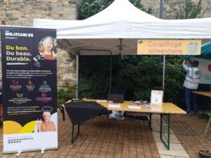 Le 22 Septembre 2024, Les Insatiables ont tenu un stand d’information et de sensibilisation auprès du grand public, lors du marché hebdomadaire. L’objectif était d’une part de proposer un Quizz sur l’alimentation durable aux passants, puis de mobiliser des habitants pour participer à l’atelier de cuisine du lendemain.