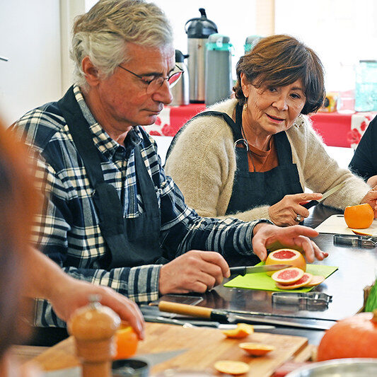 Envie de prendre soin de votre santĂ© tout en vous faisant plaisir Ă table ? De cuisiner dans la bonne humeur ? De passer de bons moments avec dâautres seniors ? đ