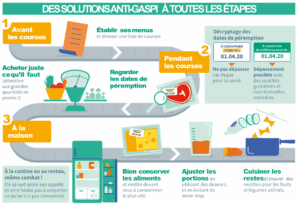 Une bonne organisation de son frigo permet de mieux conserver ses aliments et donc de moins les gaspiller. Cela commence même avant : établir ses menus en amont et faire une liste avant d’aller faire les courses permet de mieux maitriser les produits et quantités. Les dates de péremption sont à regarder, en différenciant les mentions du type « à consommer jusqu’au » (à ne pas dépasser), des mentions « à consommer de préférence avant le » (consommable, mais l’aspect organoleptique peut être affecté).